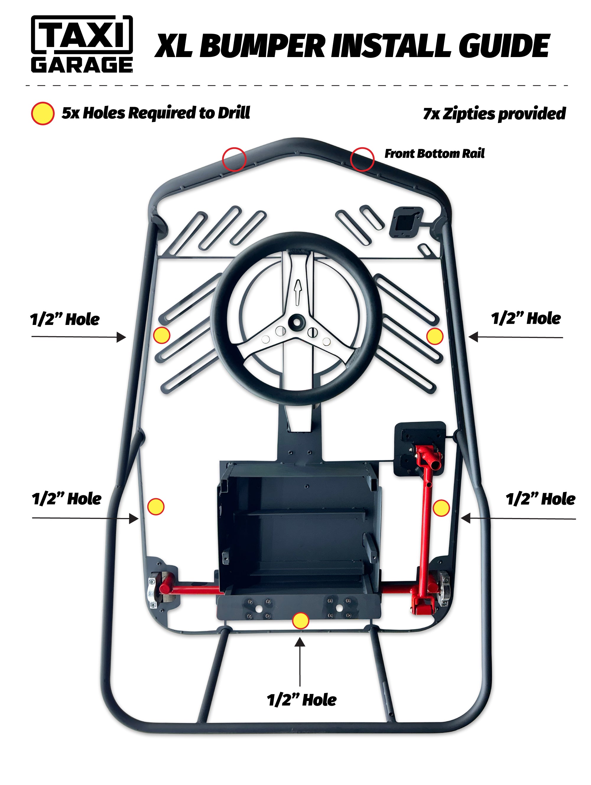 For best fitment, zip-tie around the frame by drilling small holes into chassis.