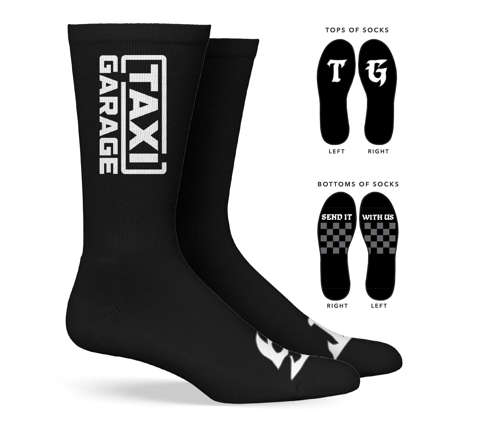 Official TAXI GARAGE crew knit socks.